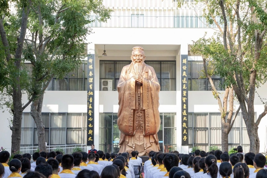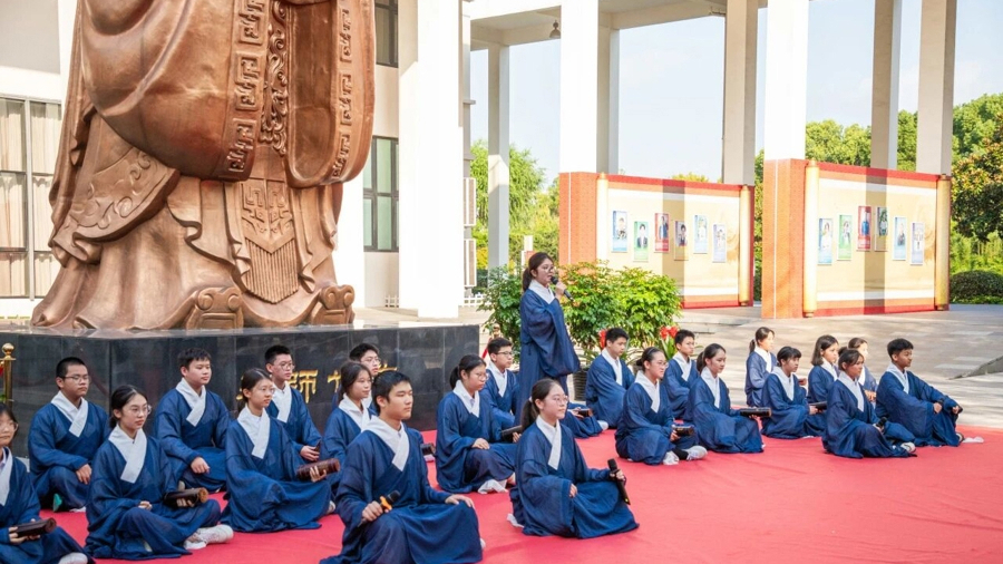 嘉定一中党总支副书记、校长李元在讲话中指出,校园中巍然矗立的孔子像,不仅是对中华优秀传统文化的传承,也是对传承教化之风的呼应和学校文化担当的表达。他强调,儒家思想所倡导的“仁、义、礼、智、信”是中华民族的文化基因,学校作为育人阵地,有责任将其融入立德树人的全过程。