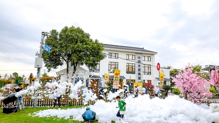 在活动现场,精心布置的“金大团丰收市集”以“可感可及可触摸”的沉浸式体验,集中呈现金大团品牌地产农产品、桃文创产品及手工艺品,广受市民游客好评。陆家嘴集团百组亲子家庭参与的桃树认养主题研学活动,通过挂牌认养、标本采集、手作体验等项目,成为镇企协同传播农耕文化的生动实践。